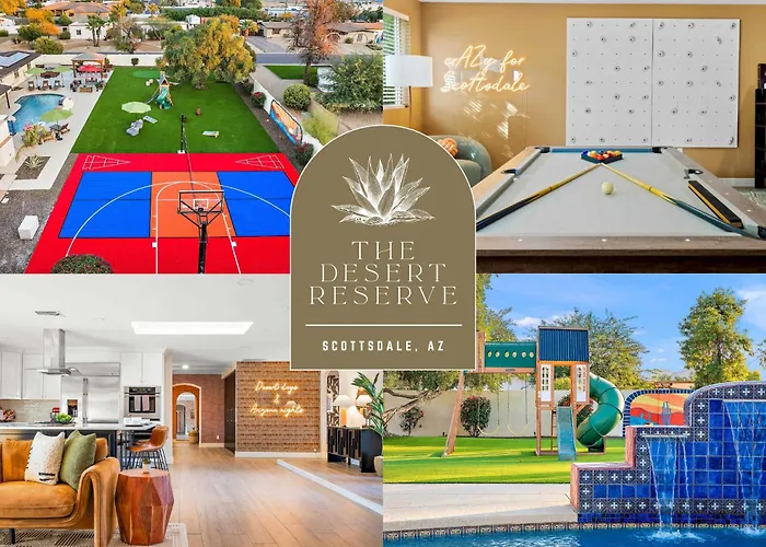 Featuring a private swimming pool for guests' relaxation, the 4-bedroom 6 Bedroom W Sport Court Pool Playground Hot Tub Arcade Phoenix villa is located around a 25-minute stroll from Thunderbird Square Shopping Center. Featuring a patio, the Phoenix holiday home is situated 3.4 miles from WestWorld of Scottsdale Event Venue.
